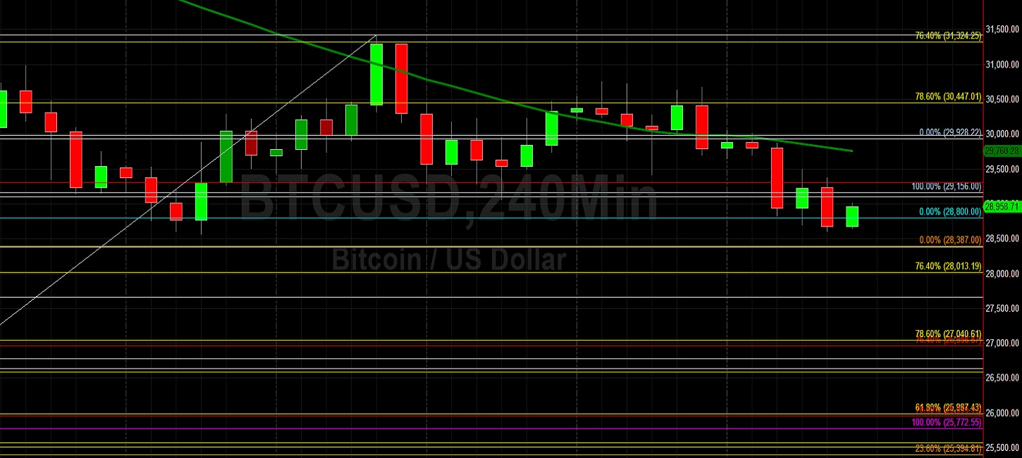 Bitcoin (BTC/USD) remained on the defensive early in the Asian session as the pair continued to probe demand below the psychologically-important 30000 figure after recently peaking around the 31418.35 area. Short-term technical support around the 29095 level gave way as BTC/USD depreciated to the 28605 level, opening up possible tests of additional short-term technical support around the 28378, 27661, 26773, and 26639 levels. Traders continue to eye the 30447 area, a level that represents the 78.6% retracement of the recent appreciating range from 21913.84 to 61788.45. Traders observe that the recent low around the 25338.53 area represented a test of the 23.6% retracement of a historical appreciating range from the 15708.24 level to the 28387 area, and was also above the 24365.11 area, a downside price objective related to selling pressure that emerged around the 48240 area.