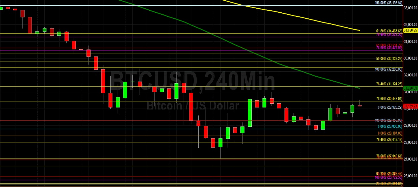 Bitcoin (BTC/USD) attempted to add to marginal gains early in the Asian session as the pair glided higher to the 30437 area after recently trading as low as the 25338.53 area, its weakest print since 2020. This recent low represented a test of the 23.6% retracement of a historical appreciating range from the 15708.24 level to the 28387 area, and was also above the 24365.11 area, a downside price objective related to selling pressure that emerged around the 48240 area. Buying pressure recently pushed BTC/USD to the 30990 area before momentum stalled, just below the 76.4% retracement of the appreciating range from 21913.84 to 61788.45. Stops were elected below many downside price objectives during the ongoing descent, including the 30435, 29645, 28927, and 28426 areas, downside price objectives related to selling pressure that intensified around the 47469, 47200, and 48240 areas.