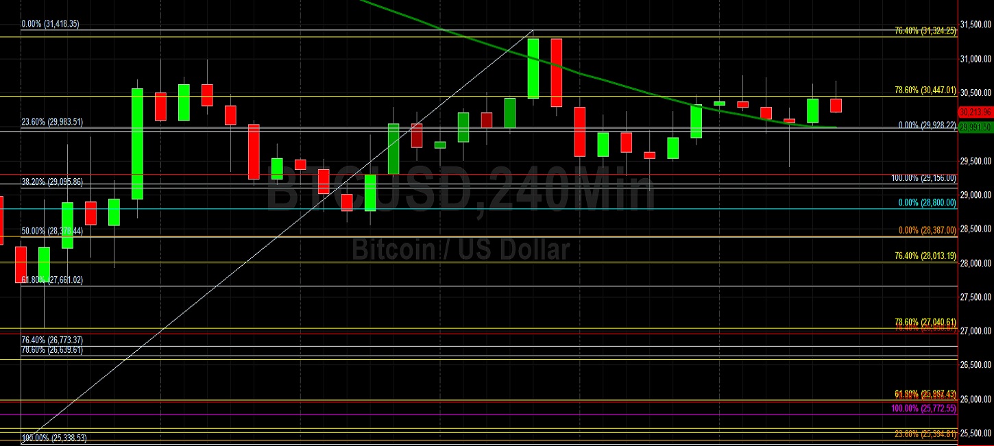 Bitcoin (BTC/USD) worked to add to recent modest gains early in the Asian session as the pair continued to orbit the 30447 area, a level that represents the 78.6% retracement of the recent appreciating range from 21913.84 to 61788.45. Following the pair’s recent appreciation from multi-month lows around the 25338.53 area to the 31418.35 area, traders are eyeing potential short-term technical support around the 29095, 28378, 27661, 26773, and 26639 levels. Traders observe that this recent low represented a test of the 23.6% retracement of a historical appreciating range from the 15708.24 level to the 28387 area, and was also above the 24365.11 area, a downside price objective related to selling pressure that emerged around the 48240 area.