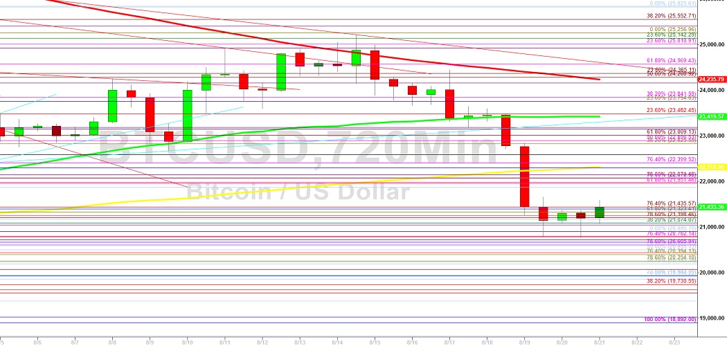 Bitcoin (BTC/USD) added to its recent slight recovery early in the Asian session as the pair gained ground to the 21587.88 area after recently trading as low as the 20760.93 area, with the interday high representing a test of the 23.6% retracement of the depreciating range from 24448.49 to 20760.93. Stops were elected above the 21430 area during the ascent, an area that represents the 23.6% retracement of the recent depreciating range from 23600 to 20760.93. Some Stops were recently elected below the 20867 area during the ongoing descent, a level that represents the 23.6% retracement of the broad depreciating range from 31549.21 to 17567.45. Stops were also recently elected below the 23185, 22296, and 21392 areas during the pullback, technically significant areas related to buying pressure that emerged around the 17567.45 area. Stops are likely in place below the 20443 area, levels that are linked to more recent buying pressure around the 18892 area.