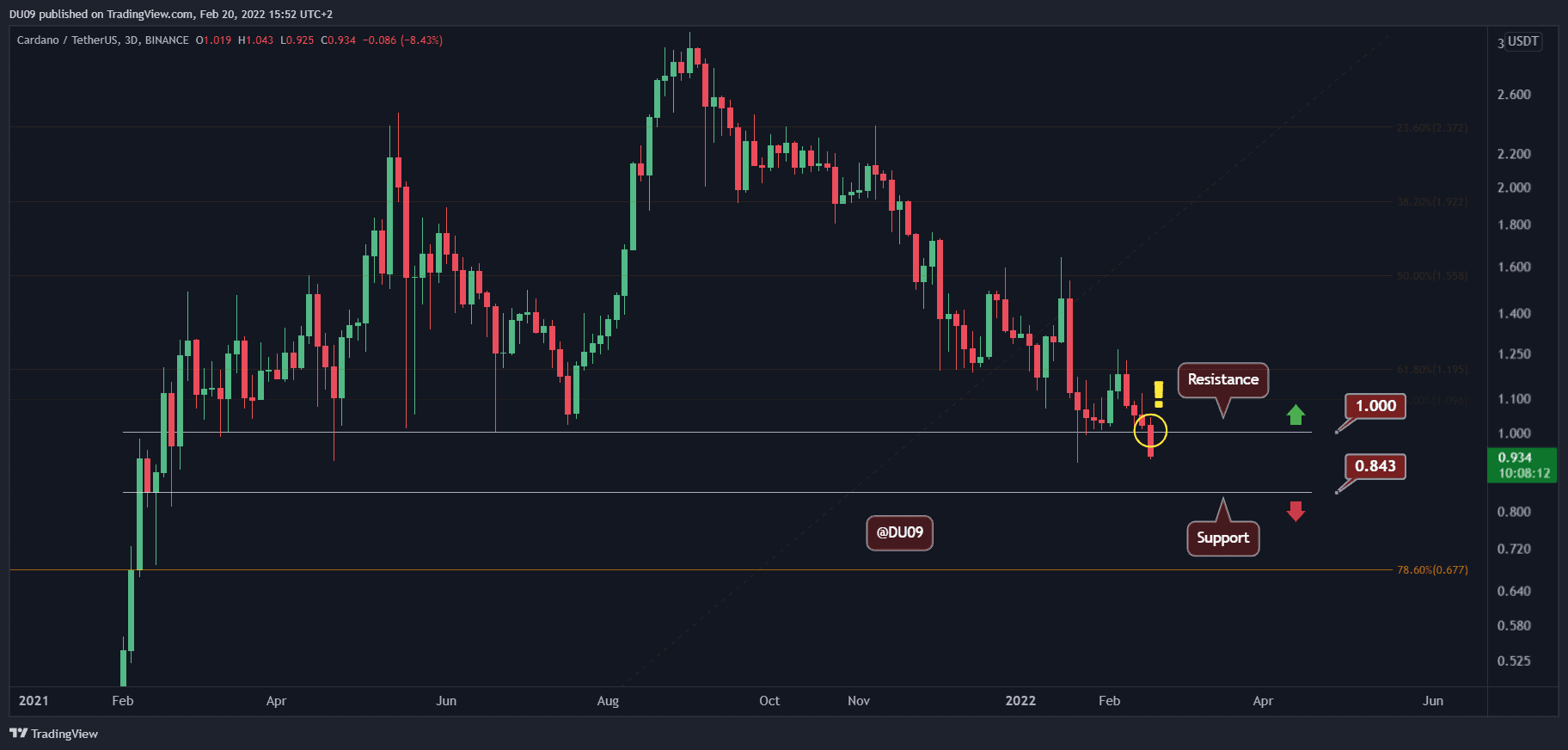 If today’s candle closes at current levels (~$0.93), we can expect the $1 to turn into solid resistance after being strong support for so long.