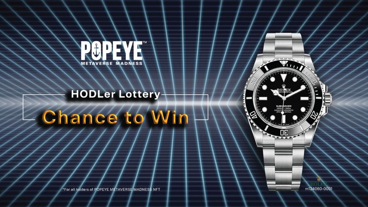 The 2nd Drawing is available to all HODLers of POPEYE METAVERSE MADNESS NFT. (A total 2,000 NFTs fall into this category). The lucky winner will receive a Rolex watch and will be excluded from future Rolex drawings (but still eligible for the 1st Drawing if they are HODLers of the “Fully Sync-ed” Popeye NFT, if they have not won the Tourbillon).